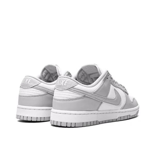The Nike Dunk Low "Grey Fog" is a specific colorway of the Nike Dunk Low sneaker. It features a light grey suede upper with tonal grey leather overlays on the Swoosh, eyestay, and heel. The tongue tag is also tonal grey, while the Nike branding on the heel is in white. The midsole is white, and the outsole is a light grey color that complements the rest of the shoe. The overall design is sleek and minimalistic, making it a versatile shoe that can be worn for both athletic and casual occasions. The Nike Dunk Low "Grey Fog" was released in 2021 as part of Nike's ongoing Dunk Low lineup.