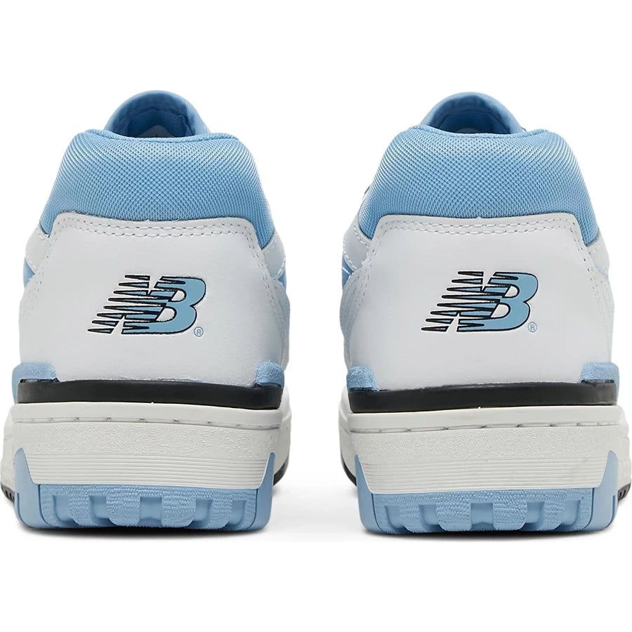 The New Balance 550 White University Blue is a sneaker that features a predominantly white leather upper with blue accents. The shoe has a vintage look and is inspired by classic basketball sneakers from the 1980s. It features a leather upper with perforations for breathability, a padded collar and tongue for comfort, and a rubber outsole for traction. The New Balance "N" logo appears on the side of the shoe in blue, while the heel tab and tongue feature New Balance branding in a combination of blue and white. The shoe also has a retro-inspired tongue tag that reads "550" in blue and white. Overall, the New Balance 550 White University Blue is a stylish and comfortable sneaker that offers a unique retro look.
