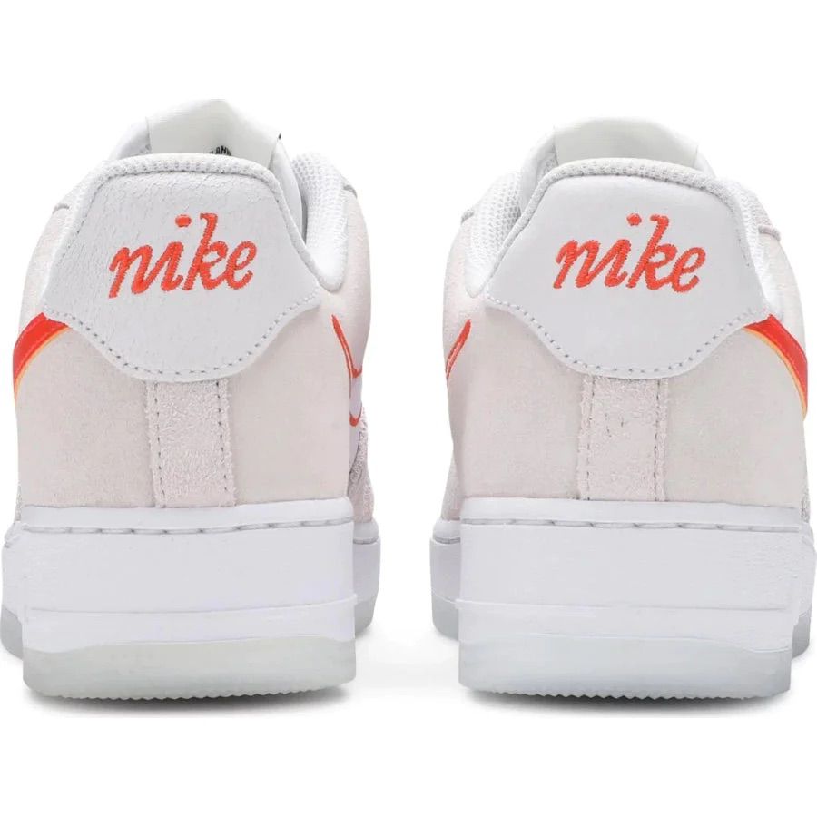 TheThe Air Force 1 SE "White Orange" is a colorway of the iconic Nike Air Force 1 sneaker. The upper is primarily white leather, with orange accents on the heel tab, tongue label, and Nike Swoosh logo. The midsole is also white, with a visible Air unit for cushioning. The outsole is made of rubber and is orange in color, with a traction pattern for grip. The shoe features a perforated toe box and ventilation holes on the sides for breathability. Overall, the "White Orange" colorway offers a bold and playful take on the classic Air Force 1 design." is a colorway of the iconic Nike Air Force 1 sneaker. The upper is primarily white leather, with orange accents on the heel tab, tongue label, and Nike Swoosh logo. The midsole is also white, with a visible Air unit for cushioning. The outsole is made of rubber and is orange in color, with a traction pattern for grip.