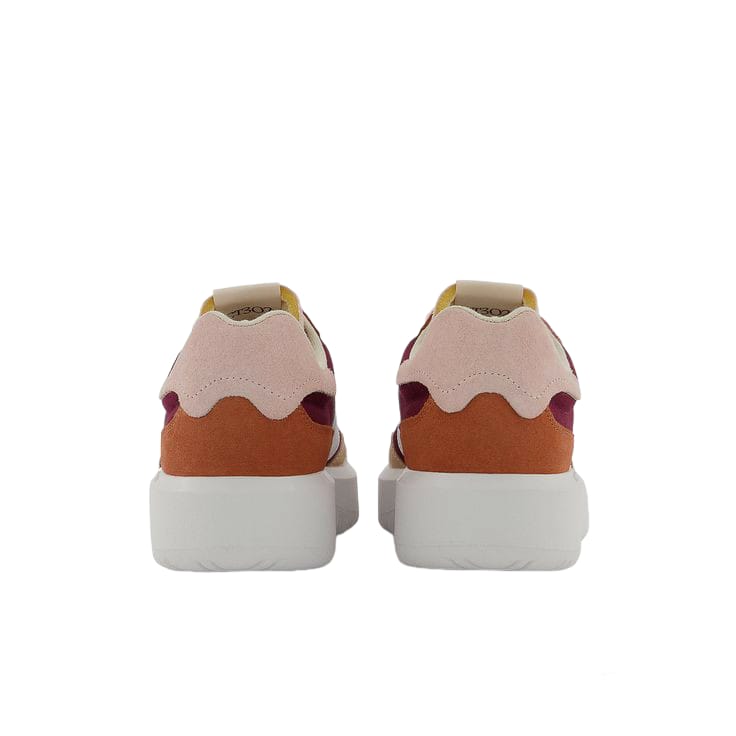 Thanks to its blend of performance qualities and understated, casual elegance, the classic tennis shoe is a timeless style fixture. The CT302 expands the everyday wearability of the classic court silhouette, with an infusion of exaggerated proportions and unexpected details. Using a 1980s on-court model, the CT300, as a launching point, the CT302 adds a stacked height midsole, an outsized take on the classic cup outsole design and ‘N’ logo, and a rubber toe wrap extending from the outsole, along with the use of curved and wavy lines throughout the design